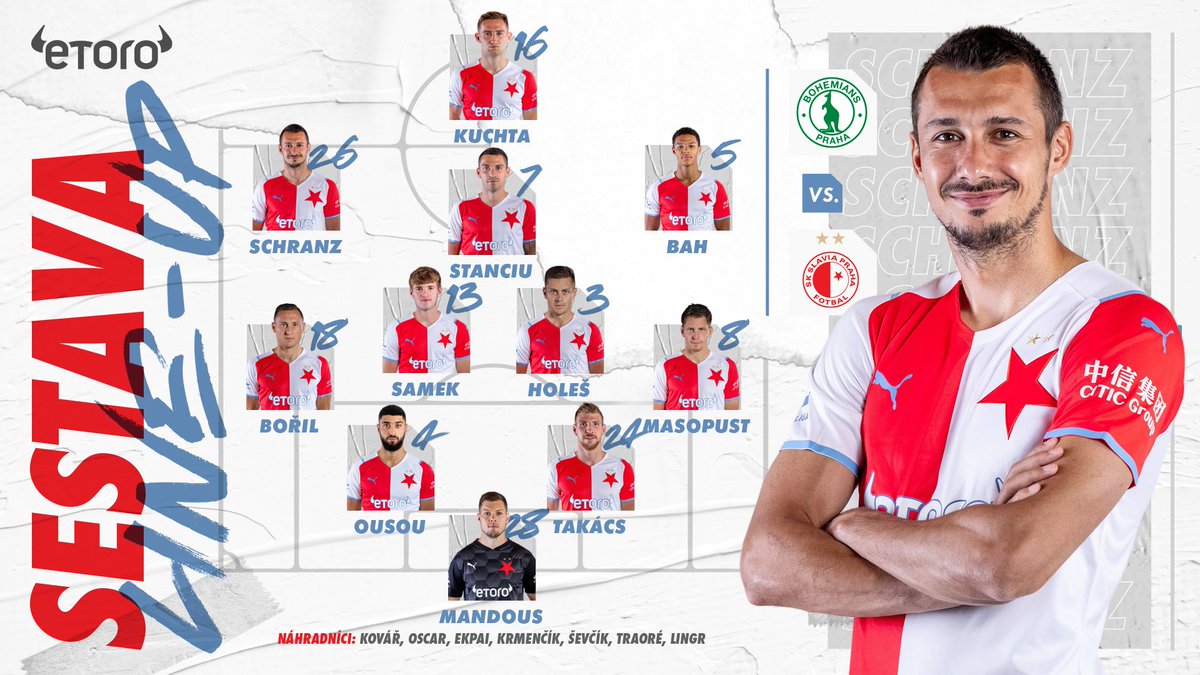 Sk Slavia Praha A Twitter Sestava Slavie Pro Souboj O Krale Vrsovic S Bohemians1905 V Utoku Mesanovic V Zaloze Poprve Hromada Bohsla